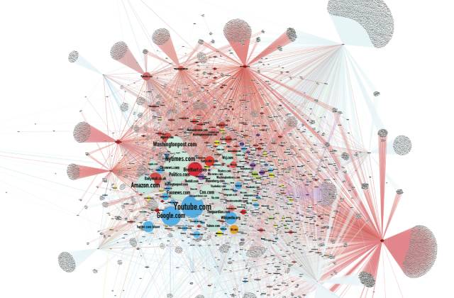 “假新闻和极度偏激的多频道网络内的站点,”奥尔布赖特写道,“其节点规模非常之小——这意味着,它们严重依赖链接,这些链接指向主流媒体、社交网络和信息来源(大多都处在网络的‘中央’),但这些网站相互之间的链接却很少。”
