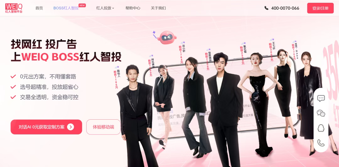 值得关注的是,9月上线的WEIQ BOSS红人智投。该产品基于Deepseek大模型,对平台350万红人资源进行多维标签化处理,将传统依赖资深投放团队数天完成的方案制定压缩至数十秒。围绕“真粉丝、真效率、真效果”,平台构建了三层能力:AI自动生成投放方案,涵盖平台策略、达人匹配、预算分配;智能筛选,精准定位目标账号;全流程透明化监测,实现"投前—投中—投后"闭环。该能力将公司十余年的营销数据资产沉淀为可复制的产品化能力,显著提升了投放达成率。