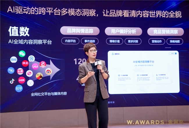 12月11日,W.AWARDS金网奖2026商业计划领航秀在京举行。值得买科技CMO凌可花受邀出席并以“AI突围跨屏全域精准营销新路径”为主题进行演讲,分享了值得买科技以AI技术升级全域营销的创新探索与实践案例。