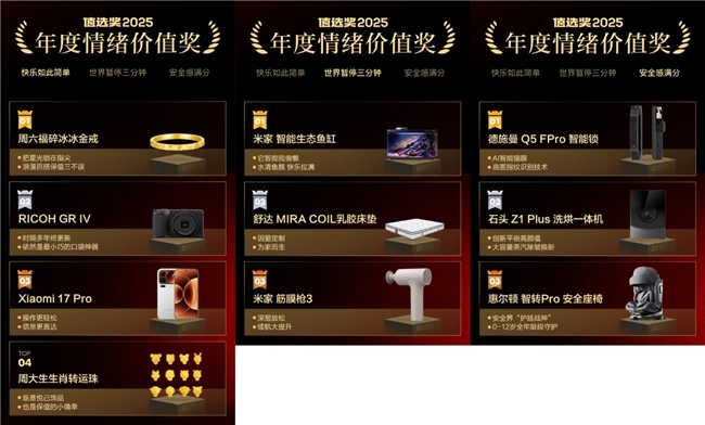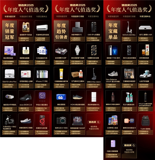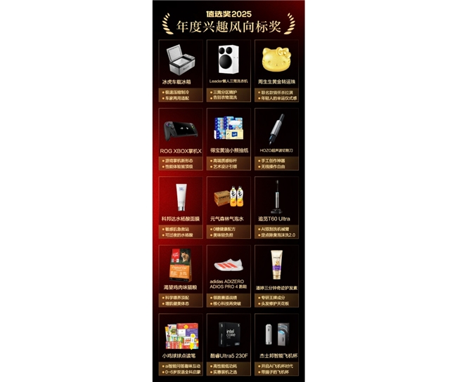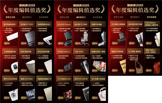 “什么值得买”2025年度“值选奖”正式揭晓:发现兴趣好物,洞察消费风向