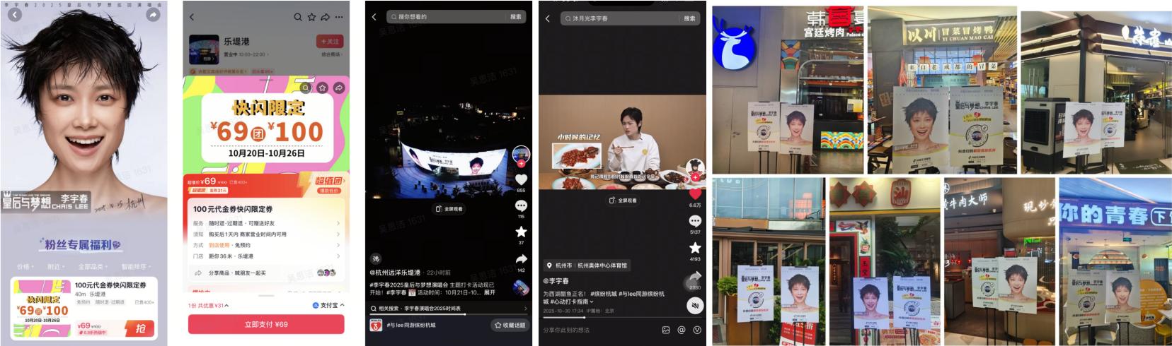 顶流天团的强势加盟,更让这场城市探寻之旅亮点拉满!活动特意组建了超顶流达人矩阵,打造出专属的“美好带路团”与“杭城美好发现官”阵容,其中不仅有@李宇春、@戴军、@赵小棠、@洪欣、@陈志朋 等明星领衔,更集结了@大蒜好好吃、@瓦萨北北、@三三三百亿 等各领域优质探店达人,覆盖洗浴、餐饮、丽人、零售等多个赛道,精准触达不同消费圈层。